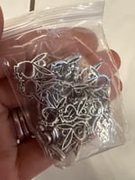 These are silver playboy inspired bunny charms can be used to make necklaces, bracelets and or earring's, these are unused and comes with the amount shown. These have no flaws or discoloration.